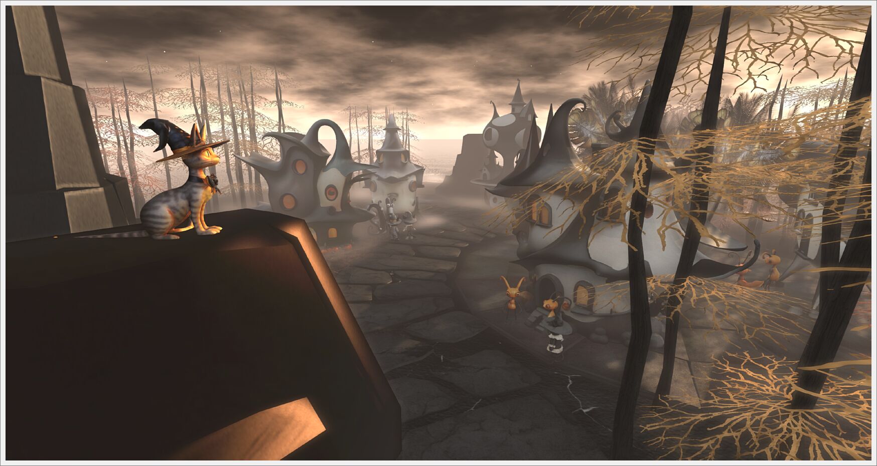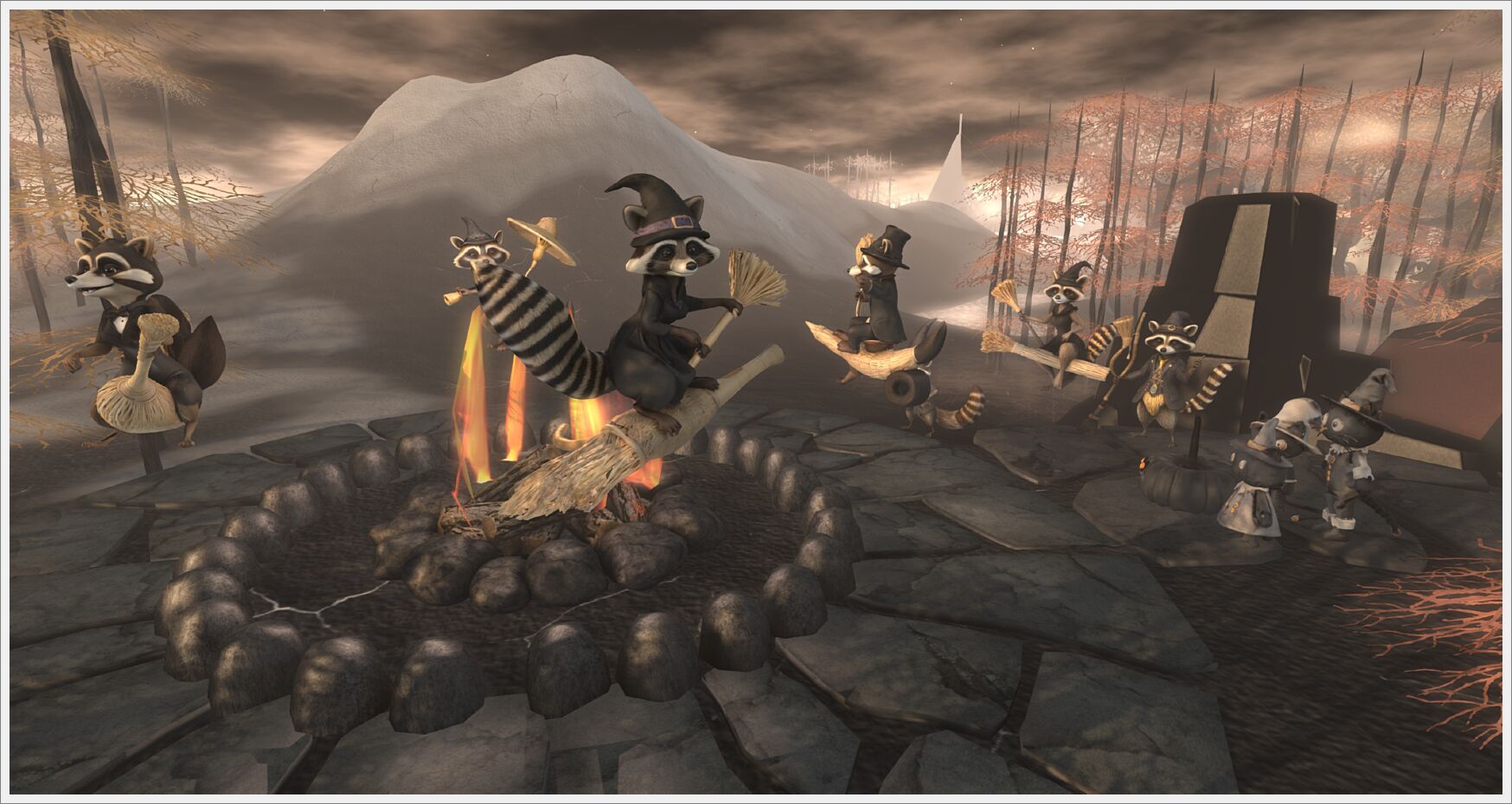 This time we have a quirky spooky village filled with Witchy Cats, Racoons, Vampires, critters and aliens! Take a walk about and enjoy your time in it!