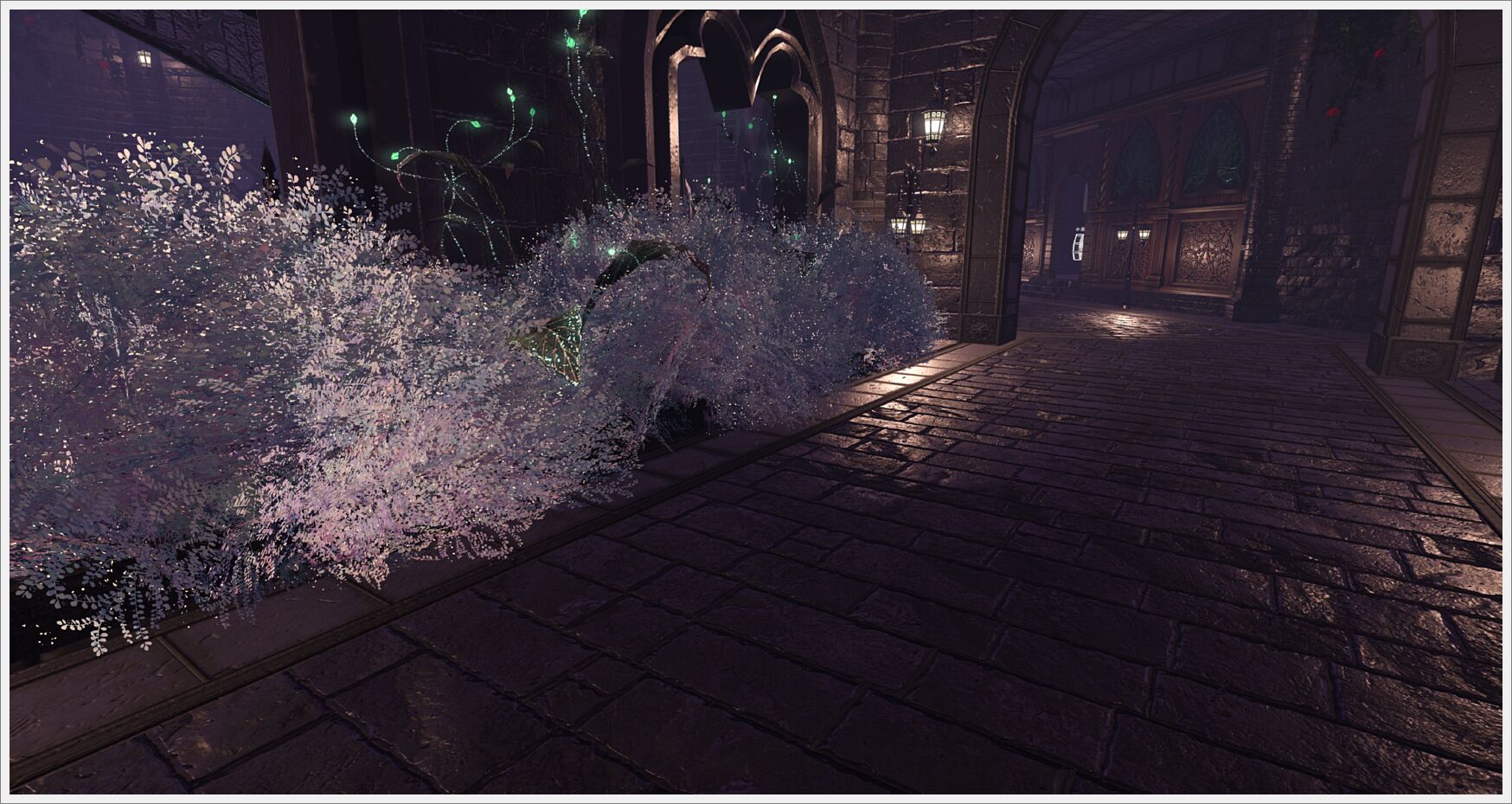 Ebonfall Aetherium is a continuation of the story and build of Sialdor from back in 2023. You can see it in many ways, the wisps that zoom about, the roses, the lamps and other ways.